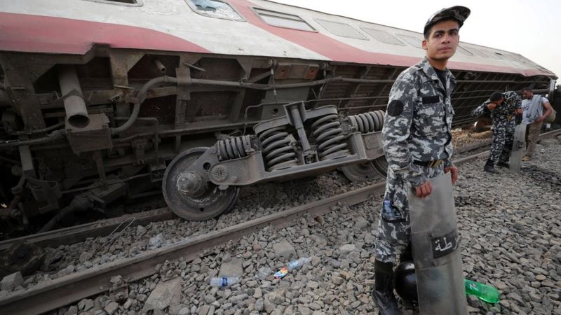 وخرج القطار رقم 949 المميز، المتجه من القاهرة إلى المنصورة، عن القضبان يوم الأحد. وقالت هيئة الإسعاف المصرية إنها دفعت بأكثر من 20 سيارة إسعاف لنقل مصابي الحادث.